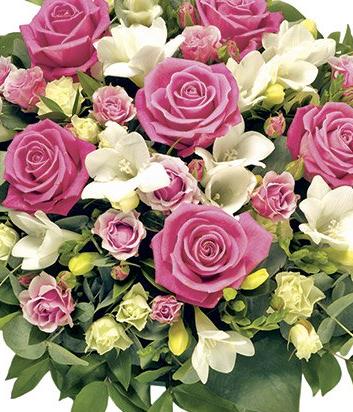 Rose and Freesia Posy available in a selection of different colours. The price shown is for a standard 10" posy and the image shown is a representation of a 12" posy tribute.