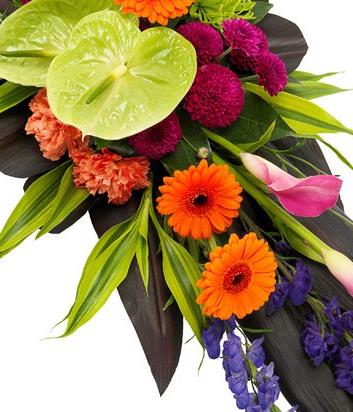 Vibrant Single Ended Spray that contains Anthuriums, Gerbera's and Calla Lilies as the focal flowers. The image and price shown is a representation of a standard 45cm design.