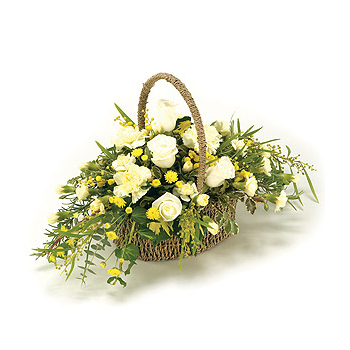 A delightful basket arrangement containing roses, carnations with elegant foliage to complement
